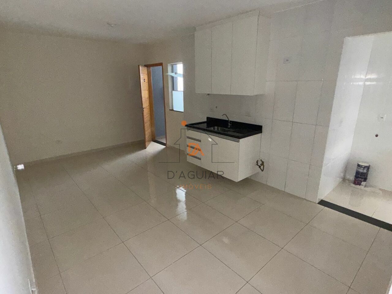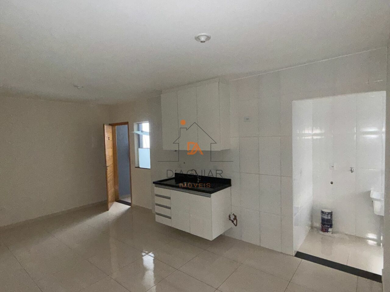1 dormitório, sala de estar espaçosa, cozinha equipada com armário, área de serviço e banheiro