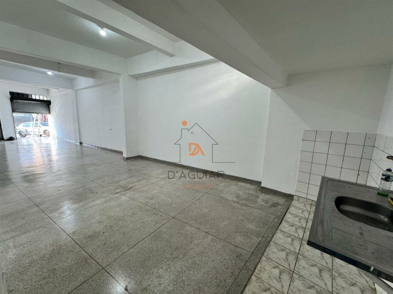 Salão de vão aberto de 120m² u com uma pequena copa, um banheiro e 3 vagas de garagem em avenida com forte movimento de pessoas e trânsito, farto comércio ao redor.
